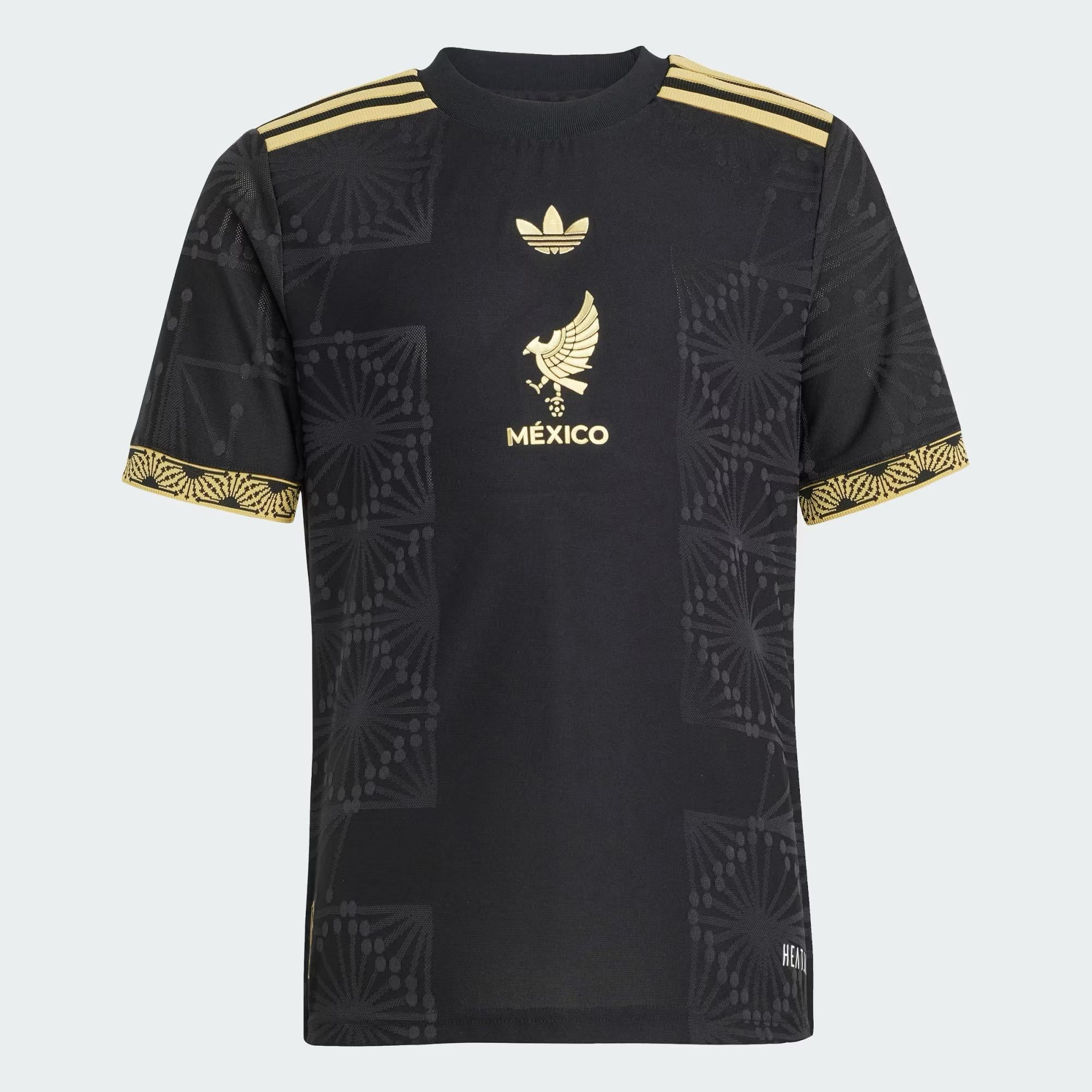 This juniors' adidas Mexico jersey is part of a kit designed to celebrate the nation's rich heritage. Built for on-field excellence, it includes ventilating HEAT.RDY to keep players focused and fans comfortable. Detailed in gold, a special team badge adds the perfect soccer finish. This product is made with 100% recycled materials. By reusing materials that have already been created, we help to reduce waste and our reliance on finite resources and reduce the footprint of the products we make.