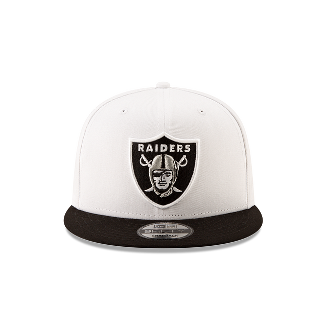 Wear your Raiders style with pride in this Las Vegas Raiders New Era White 2T Basic 9FIFTY Snapback Hat! This Las Vegas Snapback Hat features a front embroidered team logo. Go Raiders!
